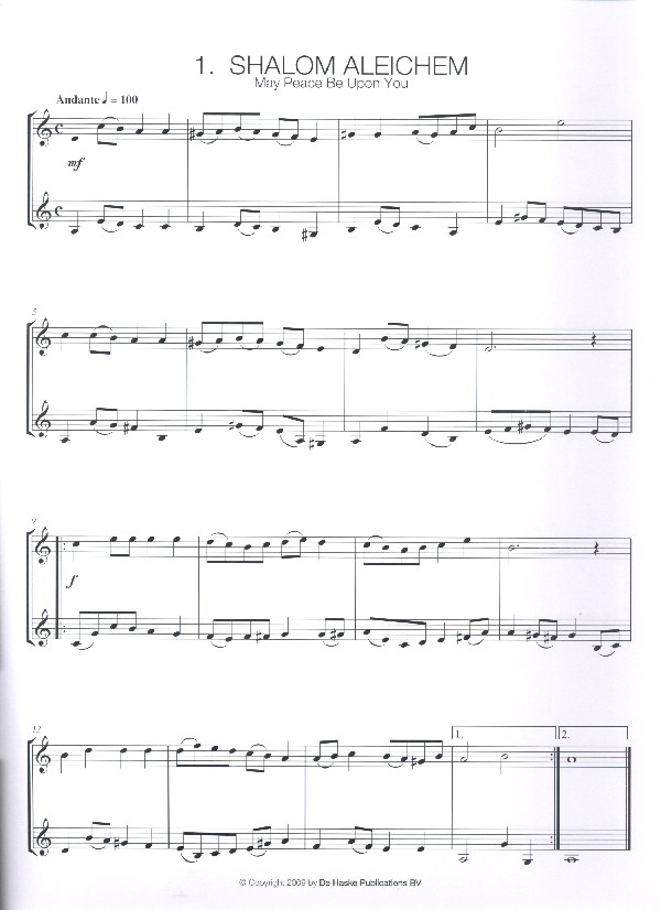 Coen, Wolfgram, arr. Shalom aleichem Ata ehad Adir hu Avinu malkenu Hatikva Erev ba Utsu etsa Hine ma tov Ma averech Hava nagila