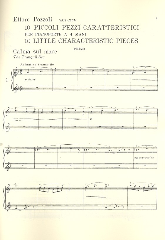 Calma sul mare Canto del marinaio lontano Serenata alle stelle Danza di marionette Siciliana Minuetto Gavotta Canzone araba Idillio campestre Giorno di festa