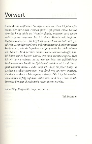 Ob Trompeter, Posaunist oder Tubist - mit diesem Ratgeber meistern alle Blechbläser die Hohen und Tiefen des Bläserlebens. Gut verständlich kommentiert und hinterfragt Malte Burba in unterhaltsamer und doch ernst gemeinter Weise alle wichtigen Aspekte der täglichen Musizierpraxis. Von Ansatzproblemen bis Zungentechnik - Professor Burba lässt keine Fragen offen!