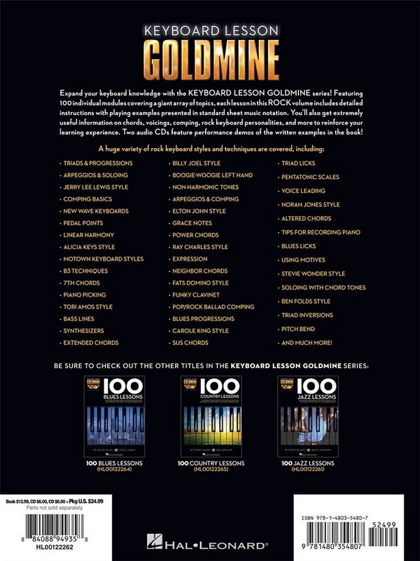 Edstrom, Brent, co-author Keyboard Lesson Goldmine features 100 individual Modules that cover a giant Array of Topics. Each Lesson includes detailed Instructions with Playing Examples