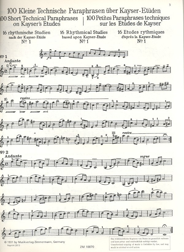 100 kleine technische Paraphrasen über Kayer-Etüden Band 1