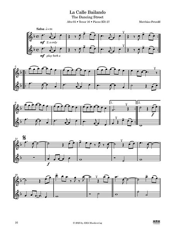 | Untertitel: | für 2 gleiche Saxophone oder Alt- und Tenorsaxophon Partitur und Stimmen |