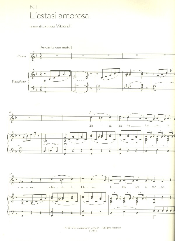 Sala, Emilio, ed Monga, Alessandro, ed L'Estasi amorosa La neve La schiavitù d'amore L'Inesperienza La desolazione L'Incostanza velata La luna L'amorosa ingenuità Ode sopra amore La protesta d'amore L'Invito a Cloe L'Estrema preghiera
