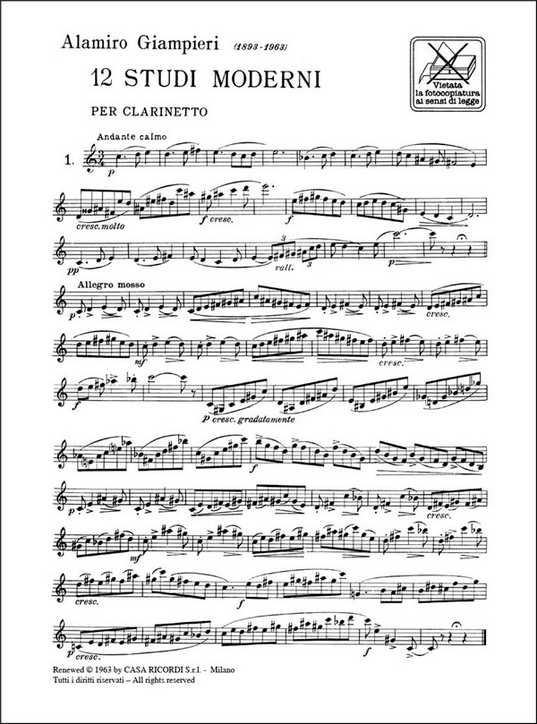 Produktinformationen "12 STUDI MODERNI PER CLARINETTO"