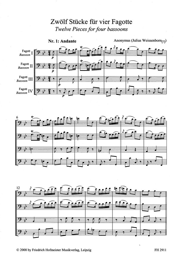 12 Stücke Band 1 (Nr.1-6 ) für 4 Fagotte