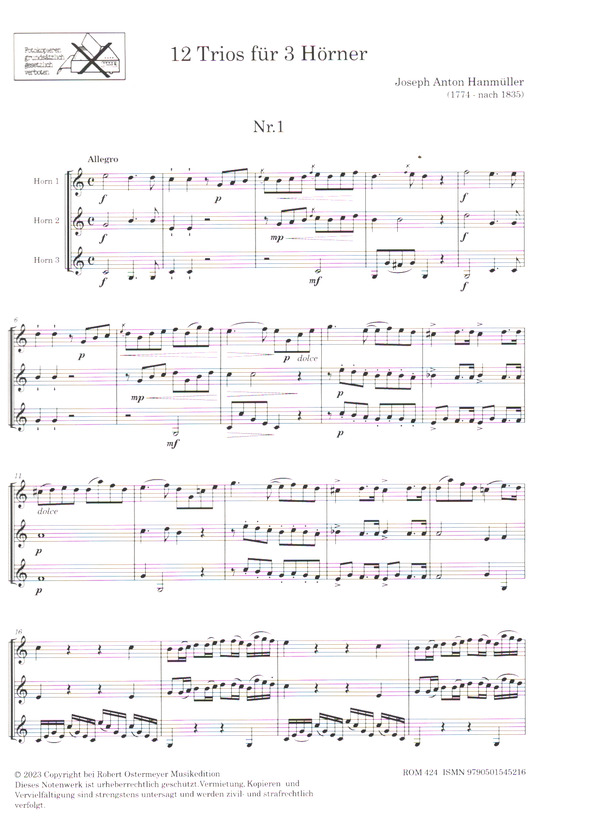 | Untertitel: | für 3 Hörner Partitur und Stimmen |