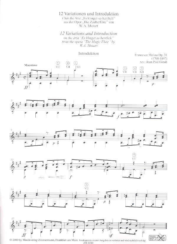 | Untertitel: | über die Arie Es klinget so herrlich aus Die Zauberflöte für Gitarre |