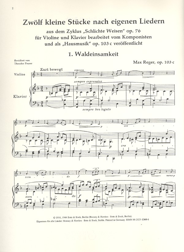 Hausmusik, op. 103c Prusse, Theodor, ed Aus dem Zyklus 'Schlichte Weisen' op.76 Waldeinsamkeit Herzenstausch Beim Schneewetter Glück In einem Rosengärtelein Friede Du meines Herzens Krönelein Wenn die Linde blüht Mein Schätzelein Klein Marie Mariae Wiegenlied Zum Schlafen