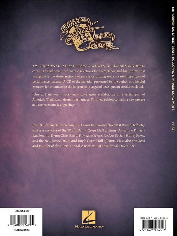 In the style of 'traditional' drum & bugle corps 128 Rudimental Street Beats, Rolloffs, and Parade-Song Parts contains traditional rudimental selections for snare, tenor, and bass drums that will provide the drum sections of parade or drilling units a varied repertoire of performance material. Contains a CD of the material performed by the author, helpful exercises for intermediate drummers, and a preface and foreword. - Preface - Foreword - 100 Rudimental Street Beats - 20 Rudimental Rolloffs - 8 Rudimental Parade-Song Parts