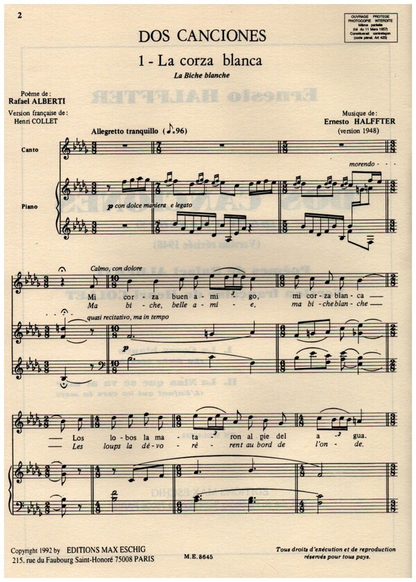 (Poemes De Rafael Alberti / Frz Collet) 1 La Corza Blanca / La Biche Blanche 2 La Nina Que Se Va Al Mar / L'Enfant Qui Va Vers La Mer