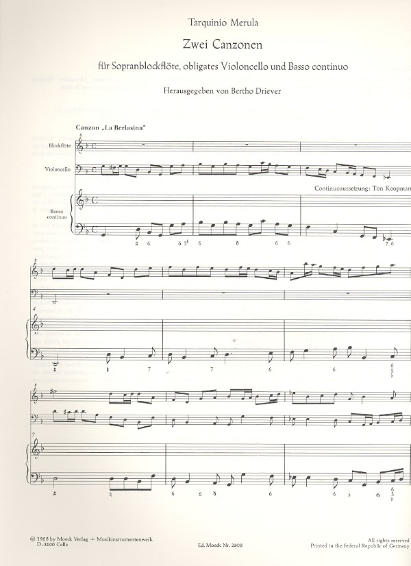 | Untertitel: | für Sopranblockflöte, obligates Violoncello und Bc Partitur und Stimmen |