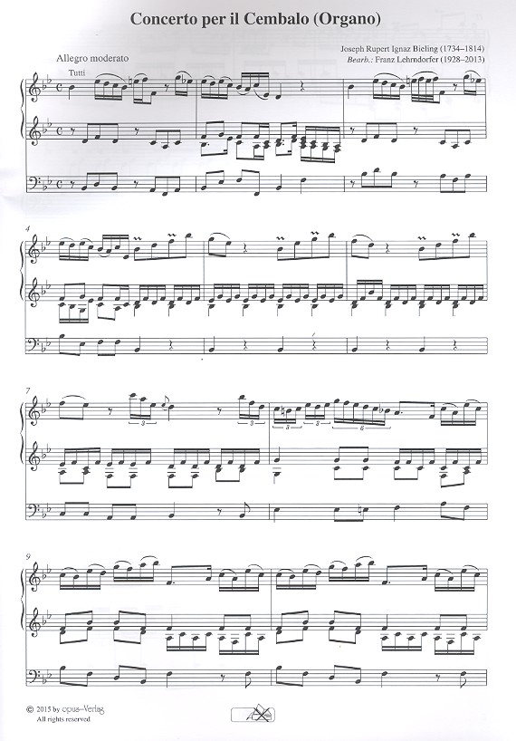 Lehrndorfer, Franz, bearb. Concerto per il cembalo (organo) (Bieling) Concerto Nr.1 (Auffmann)