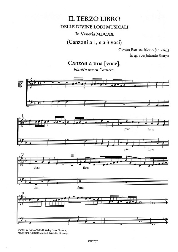 Frutti Musicali Band 12 Scarpa, Jolando, ed Canzon a una (voce) für Blockflöte (Zink) und Bc Canzon la Rubina für 2 Violinen (Zinken/Blockflöten), Posaunen und Bc aus Il Terzo Libro Delle Divine Lodi Musicali, Venedig