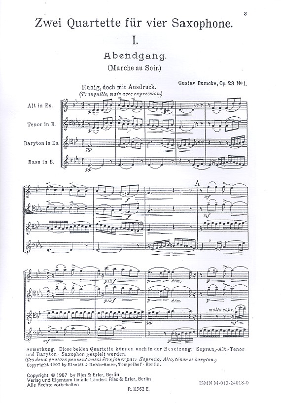 | Untertitel: | für 4 Saxophone Partitur und Stimmen |