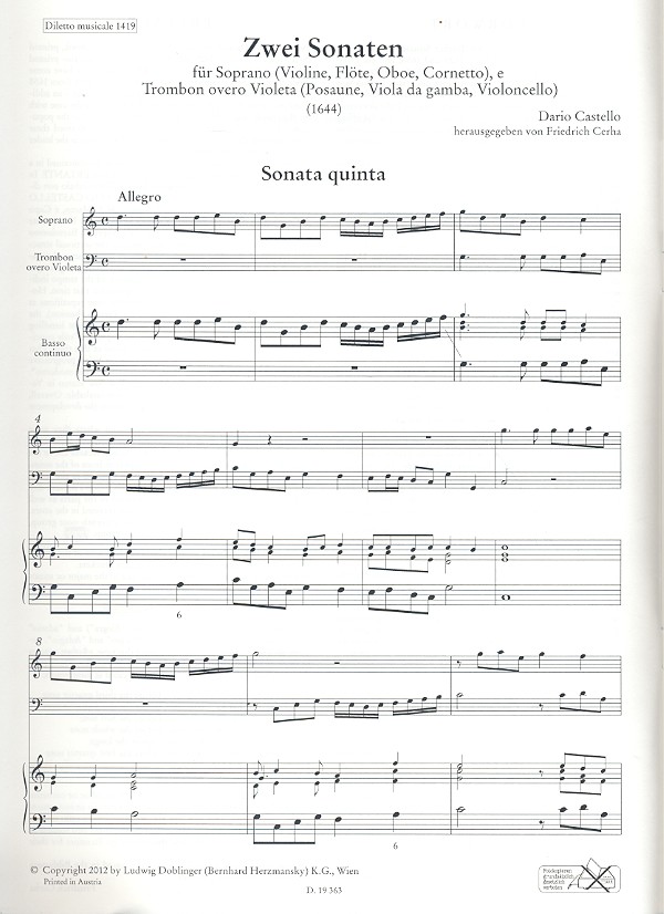 | Untertitel: | Bassinstrument und Bc Partitur und Stimmen (Bc ausgesetzt) |