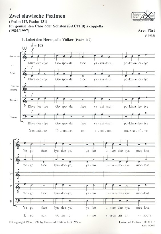 Psalm 117 (Lobet den Herrn alle Heiden) Psalm 131 (Kindliche Ergebung)