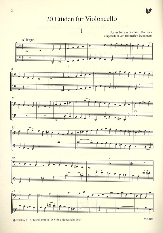 20 Etüden für Violoncello mit einer