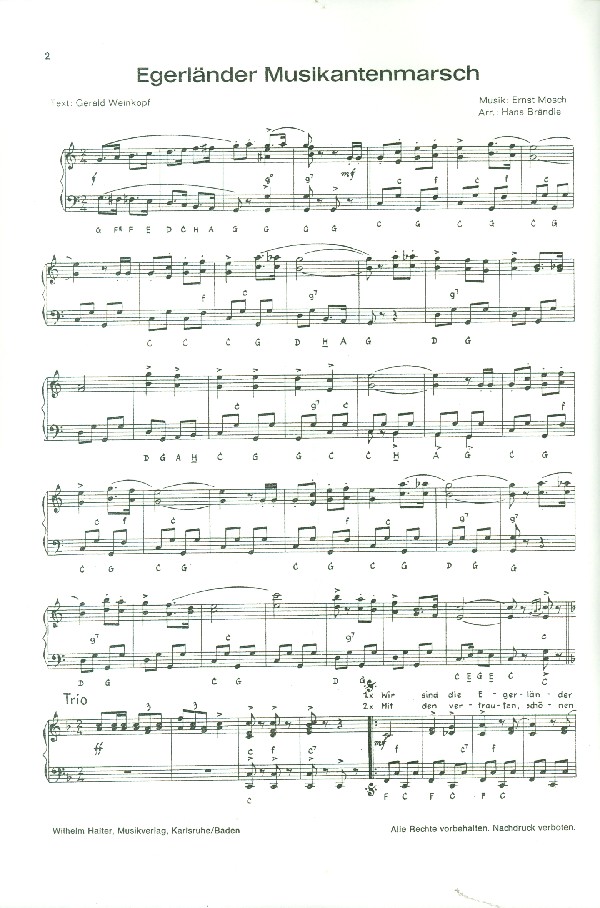 Jubiläumsheft Band 2 Egerländer Musikantenmarsch Liebespärchen Wenn du mich wirklich liebst Mausi Tanz mit mir Ja so ein Mädel wie du Böhmischer Wind Wir sind Kinder von der Eger Du nur du Blumengrüße Eine stille Stunde Sterne der Heimat Irgendwann Auf der Vogelwiese Blaue Augen Schneewalzer Wir seh'n uns bald wieder Bis bald auf Wiedersehn