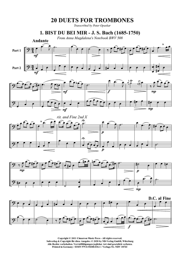 Produktinformationen "20 Posaunen Duette bekannter Melodien"