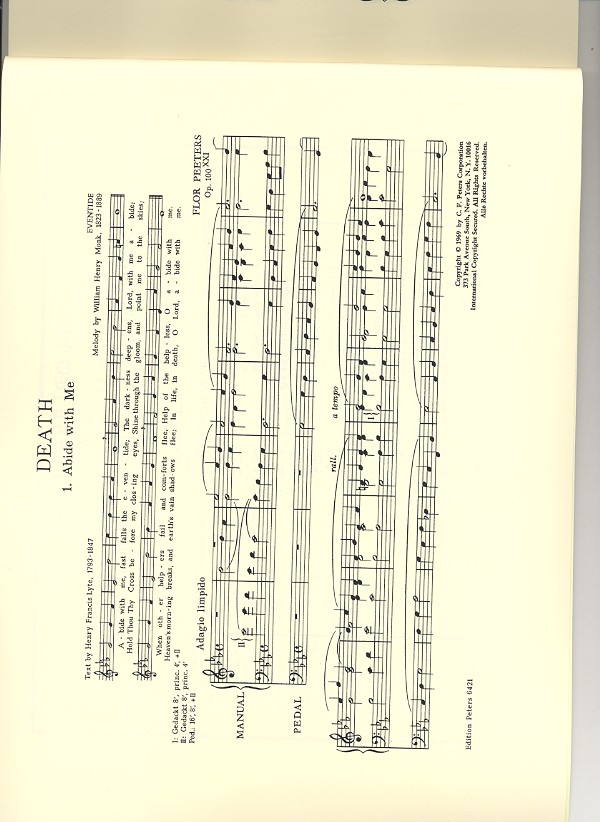 Abide with me In the midst of earthly life O come sweet death Whate'er our god ordains is right For ever with the lord Jerusalem the golden Light's abode celestial salem Ye watchers and ye wholy ones For all the saints who from the labors rest Give me the wings of faith God moves in a mysterious way O how blest are ye whose toils are ended O what their joy and their golry must be
