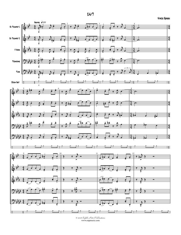 | Untertitel: | for 2 trumpets, horn in F, trombone and tuba (drum set ad lib) score and parts |