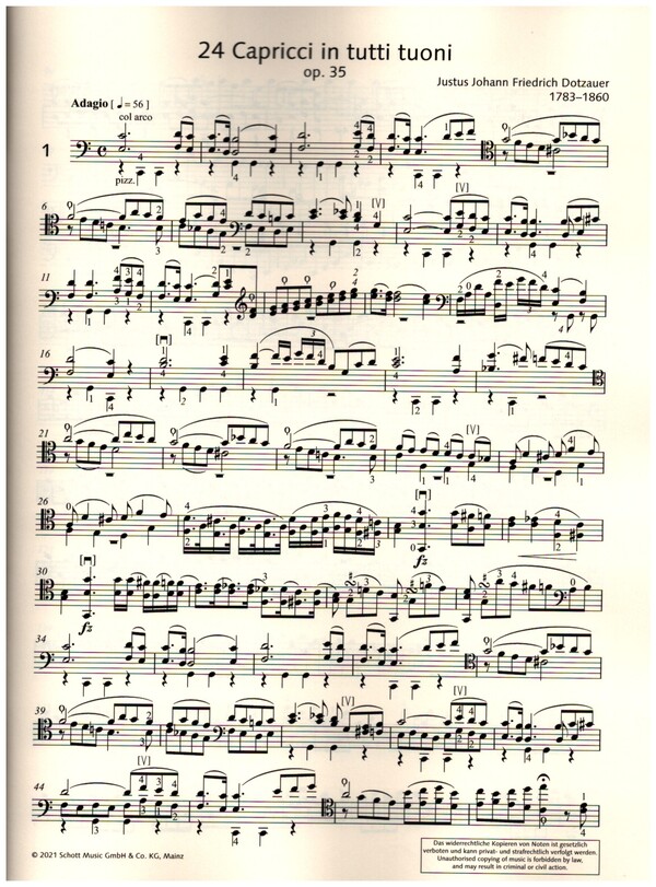 Essential Exercises Bonz, Tobias, ed Urtext Dotzauer-Etüden gehören seit Generationen zum Standrepertoire im Cellounterricht. Friedrich Dotzauer (1783-1860) war einer der bedeutenden Cellisten und Cellopädagogen im 19. Jh. und wusste, was eine gute Etüde ausmacht: sie soll eine bestimmte technische Aufgabenstellung gezielt behandeln und gleichzeitig nicht eintönig, sondern musikalisch ansprechend sein. Dies gelang dem Cellisten des Leipziger Gewandhauses und der Dresdener Hofkapelle in vorbildlicher Weise. Die 24 Capricen in allen Tonarten op. 35 (1816) sind Dotzauers Meisterwerk und bringen die vielseitigen Klangfarben und Spieltechniken des Cellos wunderbar zur Geltung. Anspruchsvolle Etüden für Unterricht und Vortrag, mit schönen melodischen und harmonischen Einfällen, einige mit ausdrucksvollen langsamen Einleitungen, andere mit kunstvollen Arpeggien oder kontrapunktisch-polyphoner Mehrstimmigkeit. Unsere Neuausgabe folgt den Originalquellen und bietet den Urtext.
