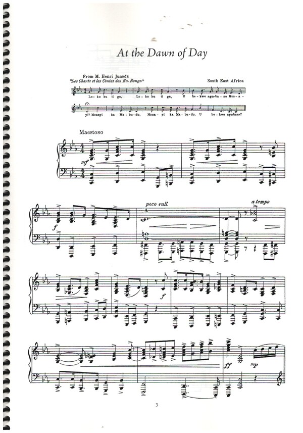 At the Dawn of Day The Stones are very hard Take Nabandji They will not lend me a Child Song of Conquest Warriors Song Oloba The Bamboula The Angels changed my Name Deep River Didnt my Lord deliver Daniel? Dont be weary, Traveler Going up Im troubled in Mind I way way down A-Yonder Let us cheer the weary Traveler Many thousand gone My Lord delivered Daniel Oh, he raise a poor Lazarus Pilgrims Song Run, Mary, run Sometimes I feel like a motherless child Steal away Wade in the water