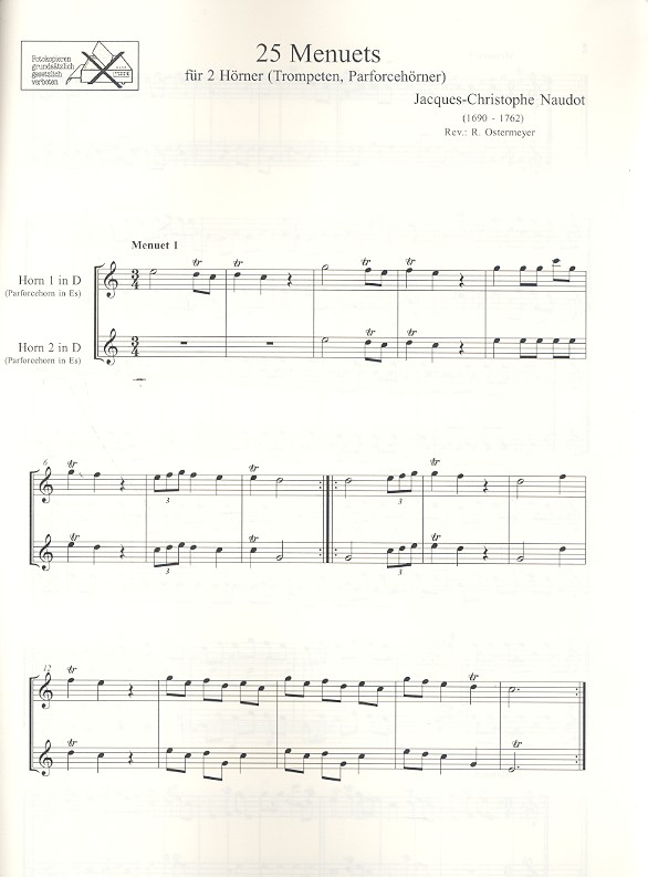 | Untertitel: | für 2 Hörner (Trompeten/Parforcehörner) Spielpartitur |