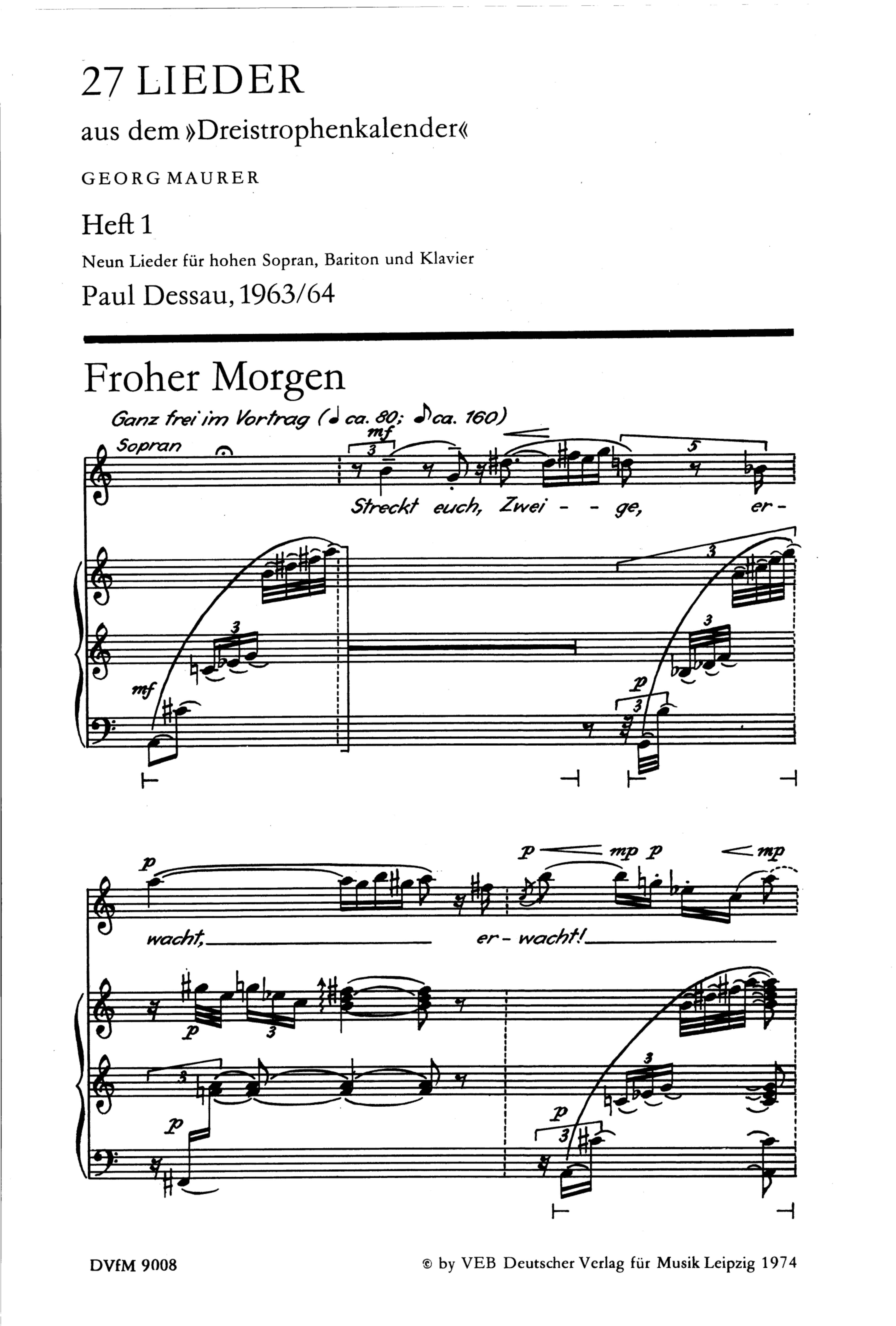 MAURER, GEORG, TEXT FROHER MORGEN : STRECKT EUCH ZWEIGE ERWACHT INTERMEZZO : DIE BAEUME KOENNEN FLOETE SPIELEN AN DIE BAEUME : NUN KOMM ICH ZU EUCH GELAUFEN MENSCHENWITZE : DARF ICH EUCH STOEREN BAEUME AM FROSCHTUEMPEL : FROESCHE NUR SIND IN DER WELT DER SCHLAF : DER SCHLAF ZWINGT MICH IN SEINE ARME VERWEHN : DIE BLUETEN SIND WEGGEFLOGEN DAS WALROSS : ICH SAH AUS DEN WASSERN SCHLAGEN KONZERT : DIE VOEGEL HABEN NACHTS GELAUSCHT DREISTROPHENKALENDER