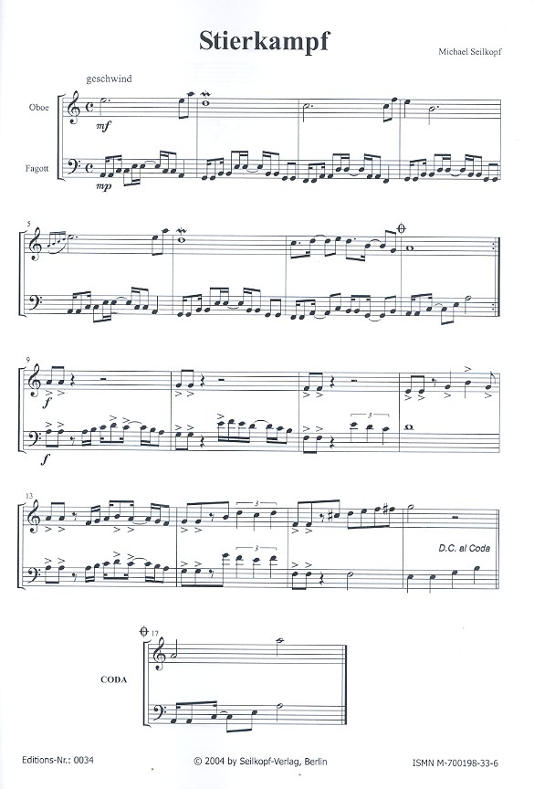 | Untertitel: | für Oboe und Fagott Spielpartitur |
