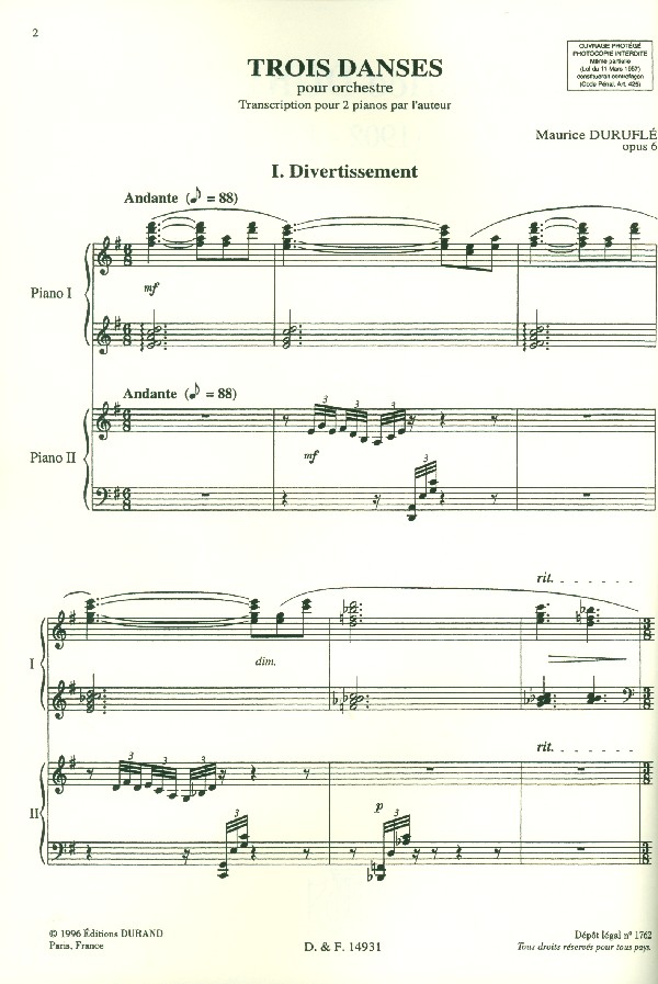 Produktinformationen "3 Danses pour orchestre pour 2 pianos"