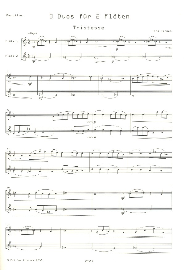 | Untertitel: | für 2 Flöten Partitur und Stimmen |