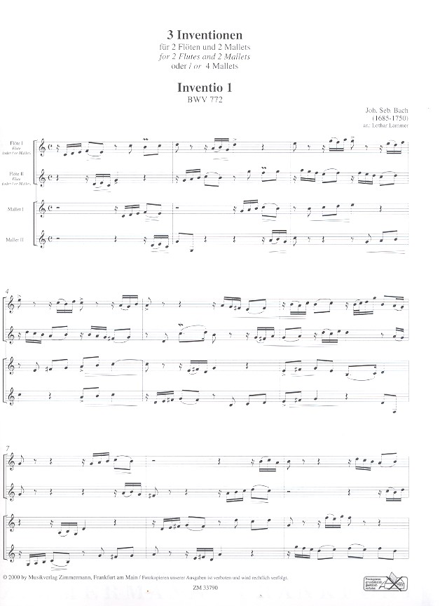 BWV772 BWV777 BWV779 Lämmer, Lothar. bearb.