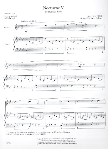 NOCTURNE V - FIELD, JOHN NOCTURNE OP.9/2 - CHOPIN, FREDERIC NOCTURNE FROM TWO PIECES FOR VIOLIN/ PIANO - BOULANGER, LILI MOLL, PHILIP, PIANO PART Galway, James, ed