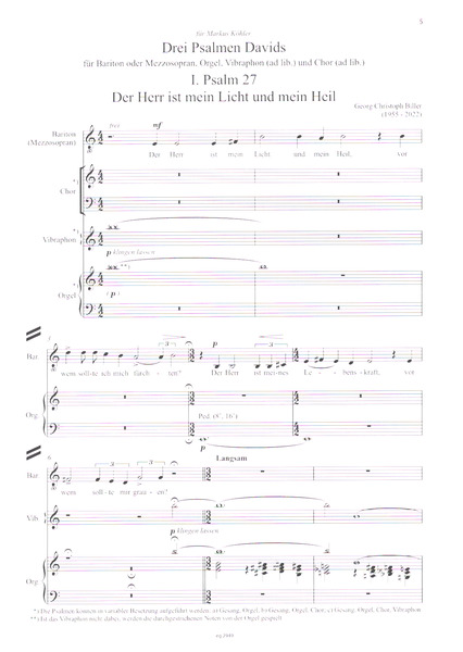 | Untertitel: | für Bariton (Mezzosop), Orgel, Vibraphon, Chor ad lib Spielpartitur |
