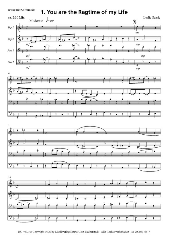 Easy Swinging Brass You are the Ragtime of my Life Showtime Ragtime Alex and der Ragtime Band