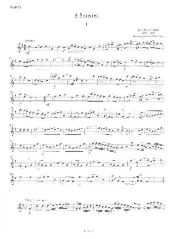 3 Sonaten für Flöte und Bc
