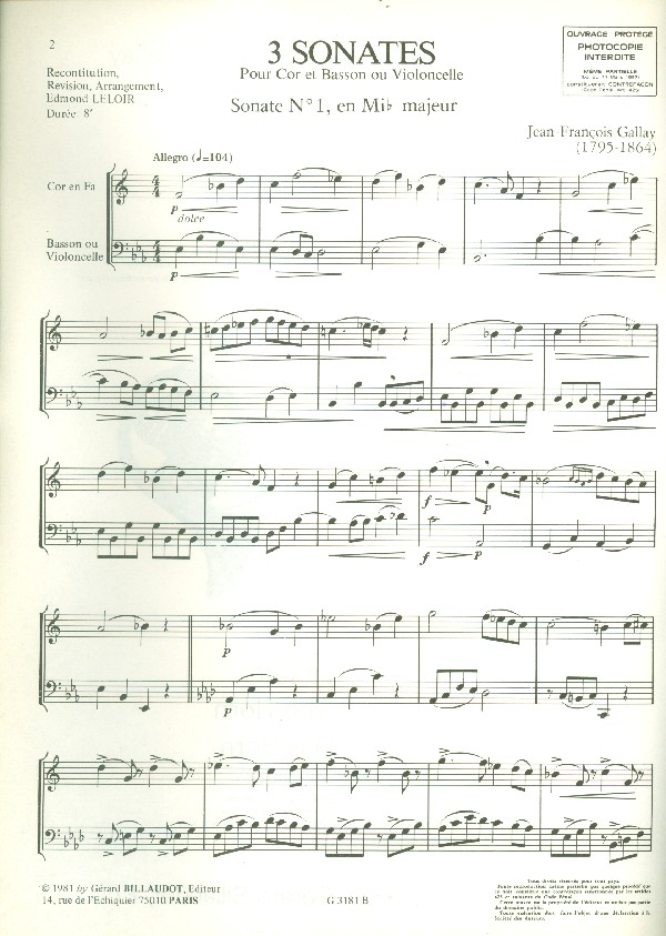 | Untertitel: | pour cor et basson ou violoncello partition |
