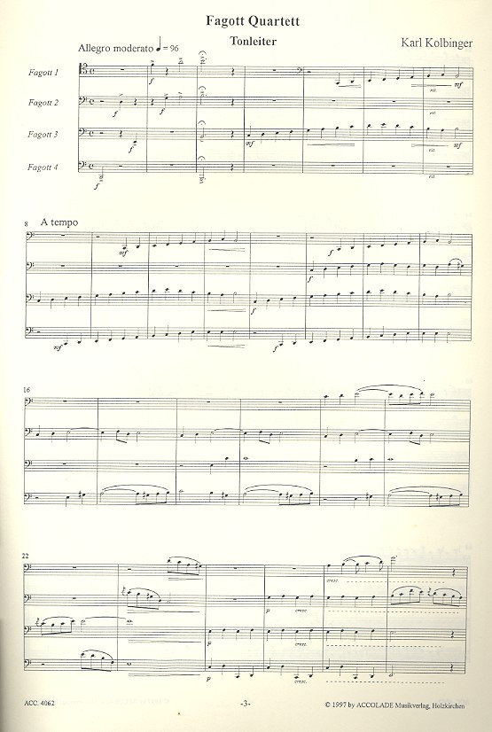 Produktinformationen "3 Spielstücke für 4 Fagotte"