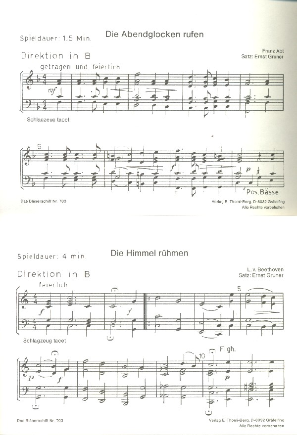 Gruner, Ernst, arr. Die Himmel rühmen (Beethoven) Die Abendglocken rufen (Abt) Allmein Gedanken die ich hab