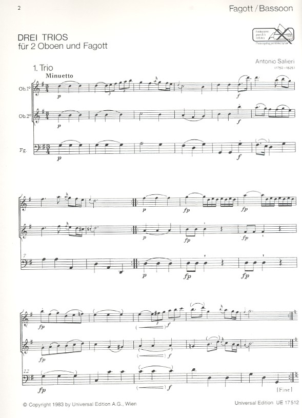 | Untertitel: | für 2 Oboen und Fagott Partitur und Stimmen |