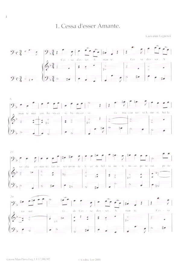 Lee, Cedric, ed Cessa d'esser amante Pene, non mi lasciate Sorgea dal sen di Lete