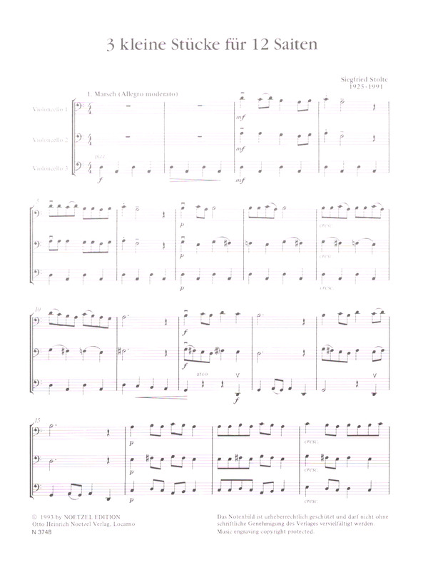 | Untertitel: | für 3 Violoncelli Partitur und Stimmen |
