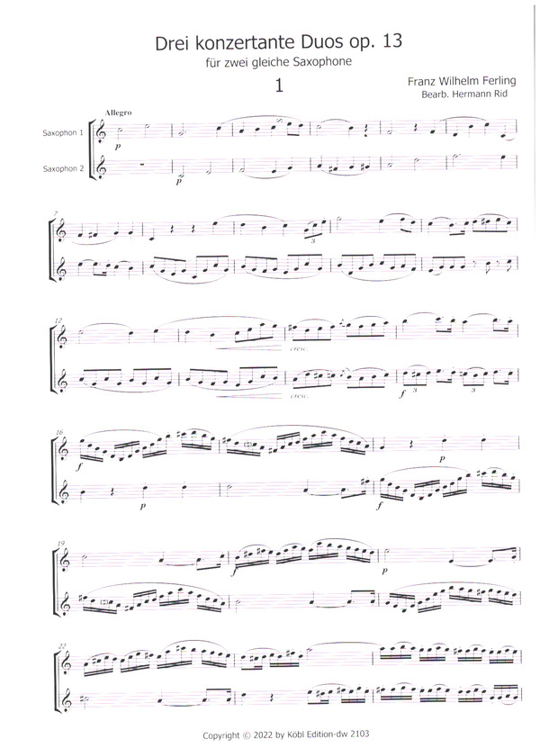 | Untertitel: | für 2 gleiche Saxophone Partitur und Stimmen |