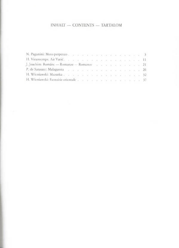 Szeredi S., Gusztav, ed Vermes, Maria, ed Moto perpetuo op.11 (Paganini) Air varie op.22,2 (Vieuxtemps) Romanze op.2 (Joachim) Malaguena op.21 (de Sarasate) Mazurka op.3 (Wieniawski) Fantasie orientale (Wieniawski)