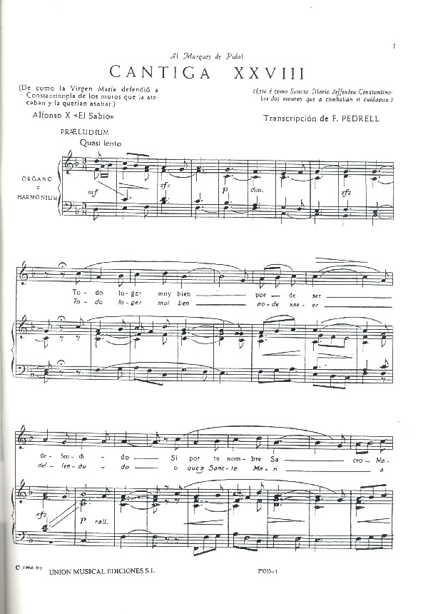 021 Pedrell, Felipe, ED Cantiga de como la virgen Maria defendio Cantiga esta e loor de sancta Maria Cantiga de como la vorgen maria guarda Cantiga de como la virgen Maria alcanzo el perdon