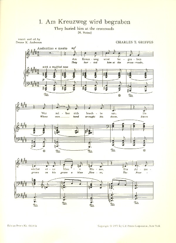 Am Kreuzweg wird begraben (Heine) An den Wind (Lenau) Meeres Stille (Goethe) So halt ich endlich dich umpfangen (Geibel)