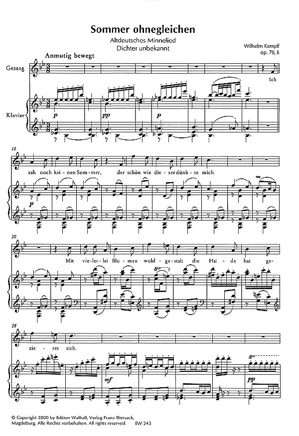 Eisenmann, Hans Peter, ed Sommer ohnegleichen = Ich sah noch keinen Sommer op.70,6 Schlafest du geliebter mein op.70,7 Der Kuß = Wie unvergleichlich ist die Schöne Gebet des Euripides = Der du die Erde trägst op.49,1