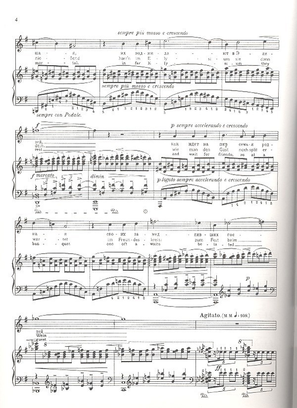 Elegy (Puschkin) Wie liebe ich dein Dämmerdunkel Der Karren des Lebens (Puschkin) Schwer ist der Karren oft beladen Das Nachtlied (Tjutschew) Gleichwie der Ozean die Welt umfasst Unsere Zeit (Tjutschew) Der Menschheit Geist ist schwach