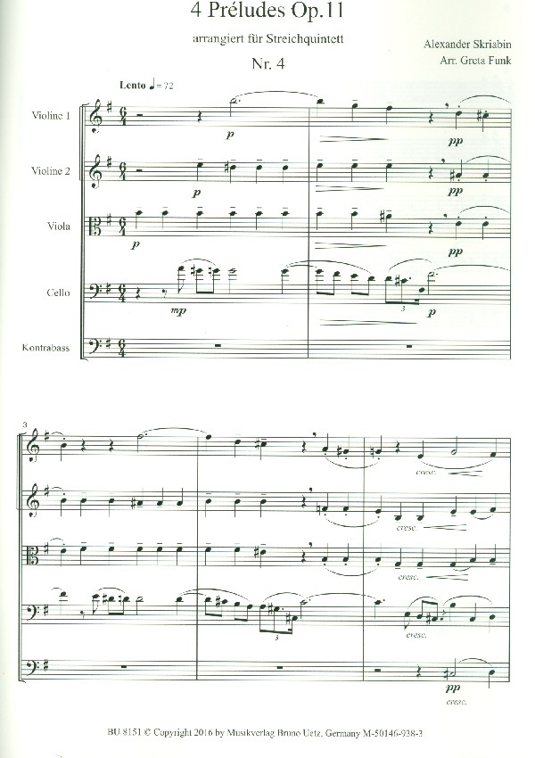 | Untertitel: | für 2 Violinen, Viola, Violoncello und Kontrabass Partitur und Stimmen |